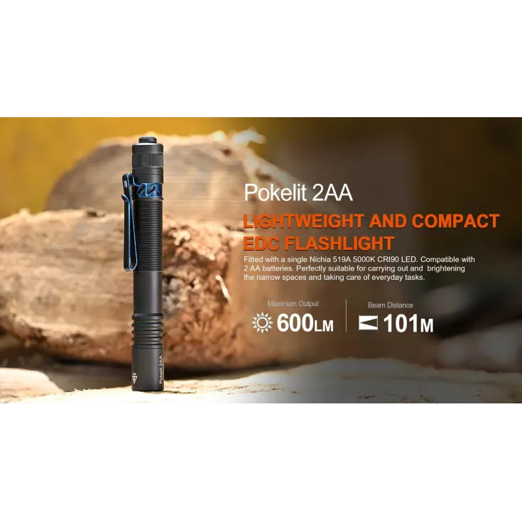 Powered by the included 1600mAh USB-C Li-ion rechargeable battery, the Pokelit 2 AA is also compatible with two AA cells, making it an ideal backup light for travelling. Weight excluding batteries is only 42 grams with a length of 14.4cm.