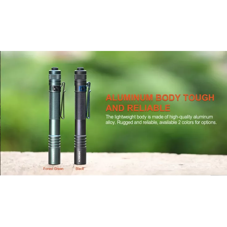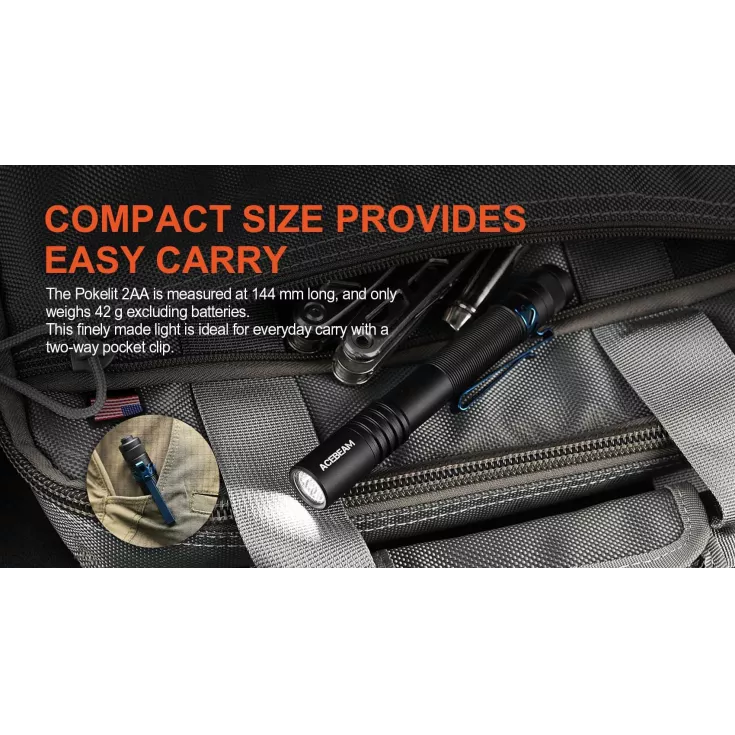 The Acebeam Pokelit 2 AA is a compact and lightweight everyday carry torch constructed form high quality aluminium. Featuring a Nichia high CRI 519A LED in 5000K for realistic colours. Ideal for dentists, electricians and engineers who require optimal colour rendition.