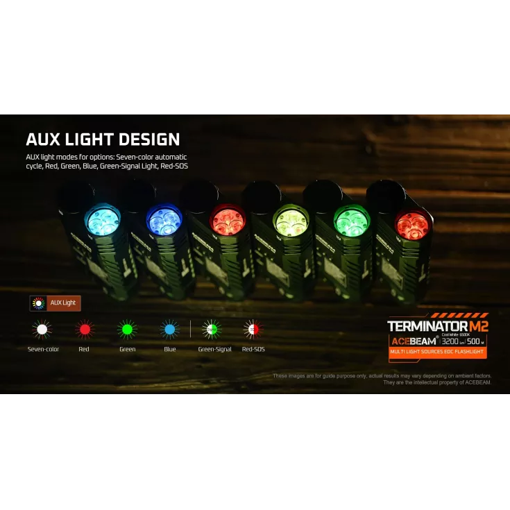 Seven-colour: 0.5 lumens – 300 hrs runtime