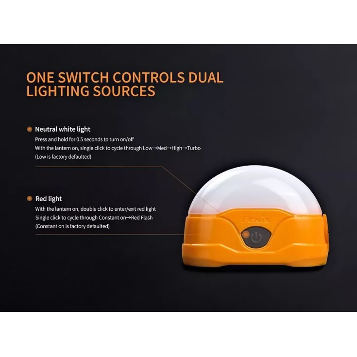 The CL20R is the ideal camping light; small and compact it can easily accompany you on your outdoor adventures. The light provides four levels of neutral white light and two levels of red light, including a flashing red mode. The lantern features a magnetic base and hanging loop for convenient and easy hanging to ensure your illumination needs are met.