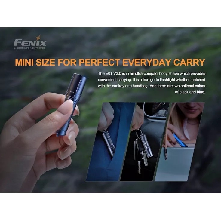 The Fenix E01 V2.0 is the upgraded version of the popular E01 keyring light and offers lots of improvements whilst keeping the best and most loved features. The E01 V2.0 has a maximum output of 100 lumens from the Cree XP-G2 S3 LED and has two additional brightness levels so you can find the right output for your everyday application.