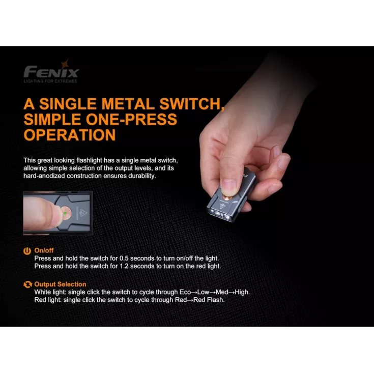 Featuring an all-metal body, the E03R is sleek and smooth, making an excellent addition to your keychain. With a weight of just 22g, the light can alternatively be stored in a pocket or attached to your accessories using the included split ring.