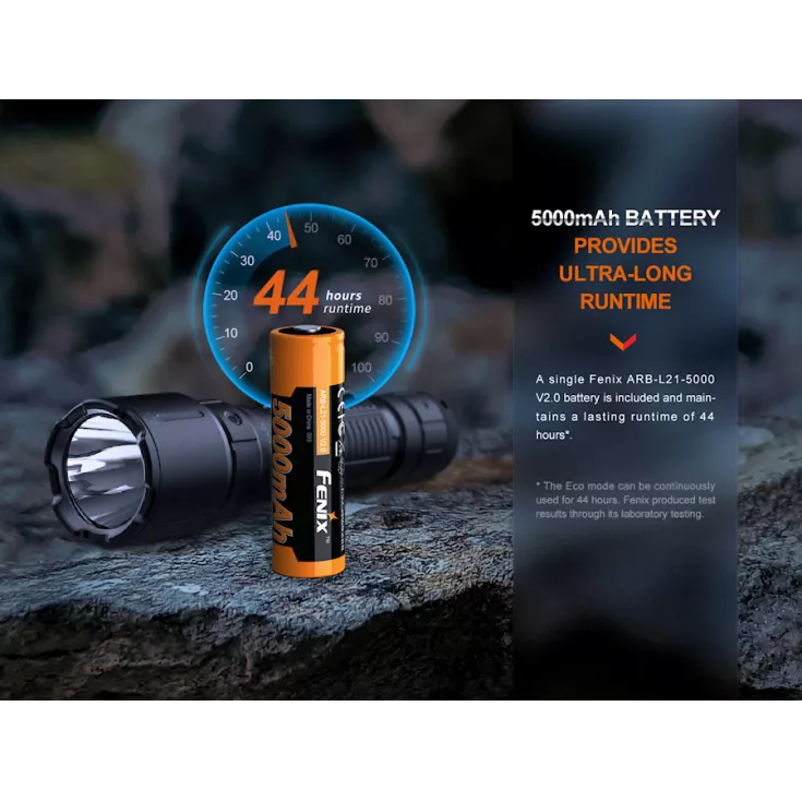 Fenix WF26R Includes: ARB-L21-5000 V2.0 21700 Li-ion battery, charging cradle, magnetic charging cable, wrist lanyard, spare o-ring and user manual.