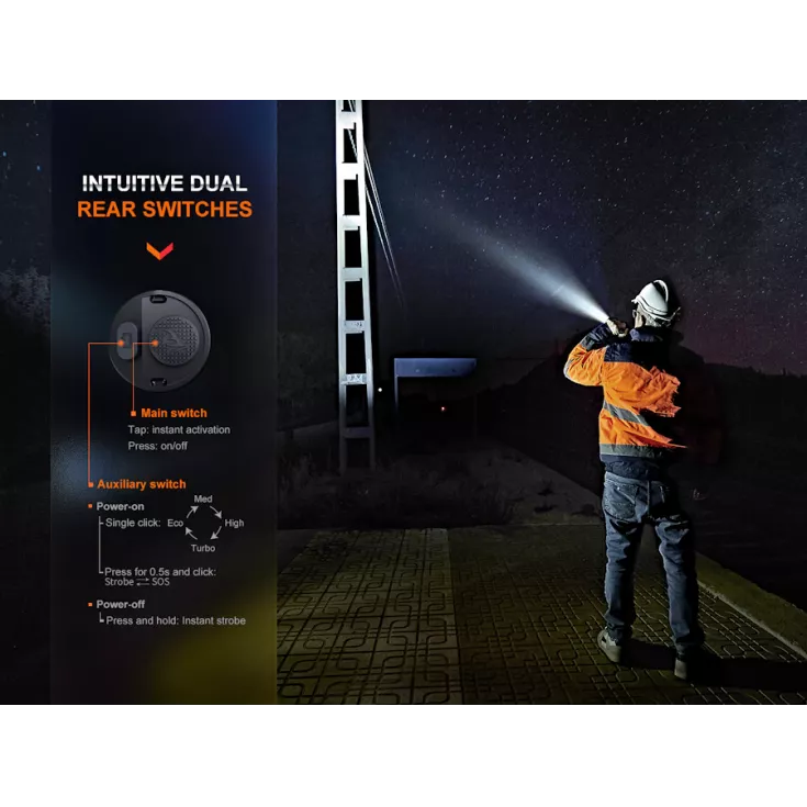 Operation of the Fenix WF26R is via intuitive dual rear tail switches, with instant access to strobe available and four brightness levels.