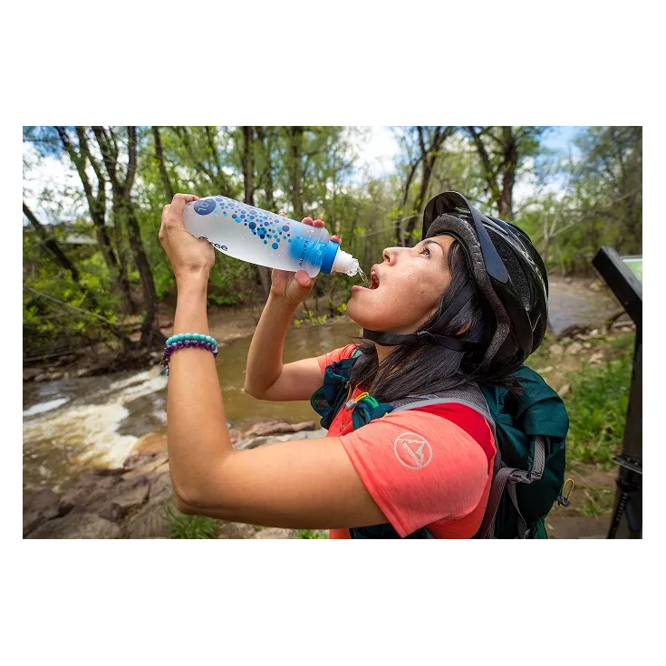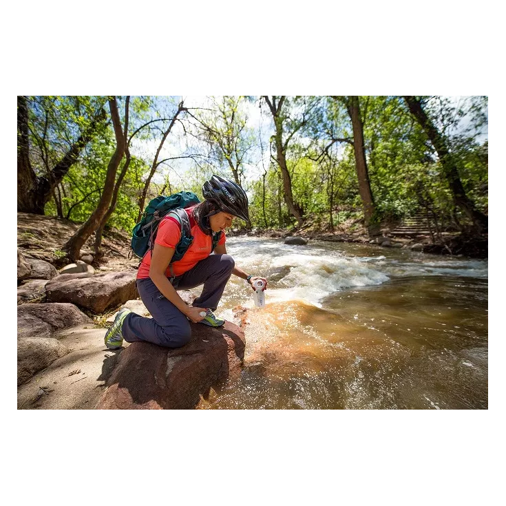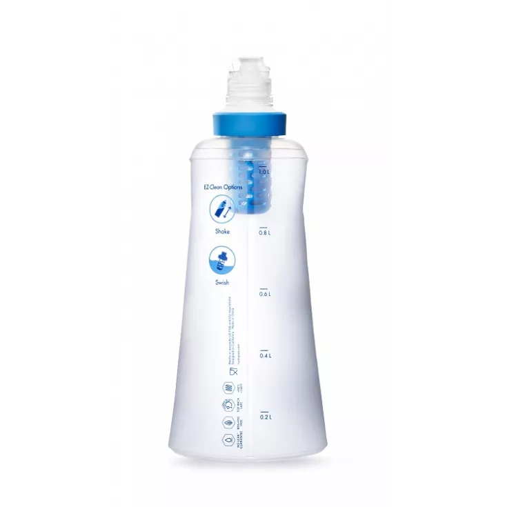 To use fill the flask and gently squeeze for instant refreshment. The EZ-Clean filter removes bacteria, cysts and sediment with an output of up to 2 litres per minute with a pore size of 0.1 micron (0.0001 mm).