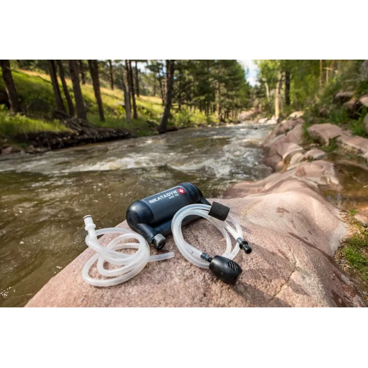 A quick stop at a stream or lake can net 1 litre per minute and the quick connect fittings enable simple one-step filtering direct into most water bottles and reservoirs.