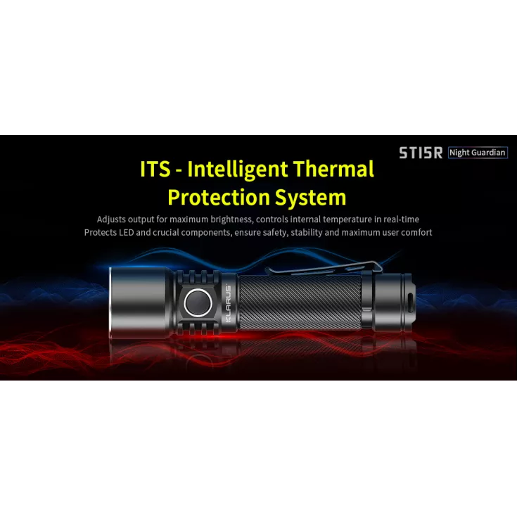 The Klarus ST15R torch has a maximum output of 1200 lumens from the Cree XP-L HD V6 LED and is powered by 1 x 18650 (included) rechargeable Li-ion cell or 2 x CR123 single use batteries. When using the 18650 battery the charging cable can be plugged directly in to the torch, offering fast and convenient charging without the need for a separate charger.