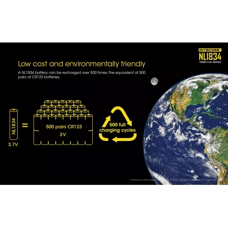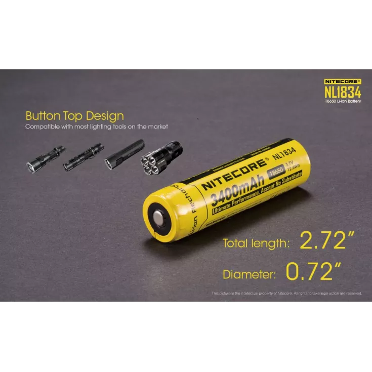 High quality button top Li-Ion battery from Nitecore. Purpose designed for high performance flashlights with protected circuit.