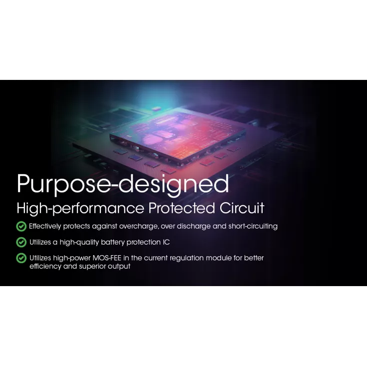 The battery is equipped at both ends with a nickel-plated stainless steel protector ensuring high impact resistance, good electrical conductivity and oxidation resistance, coated with durable metallic film to guard against abrasion.