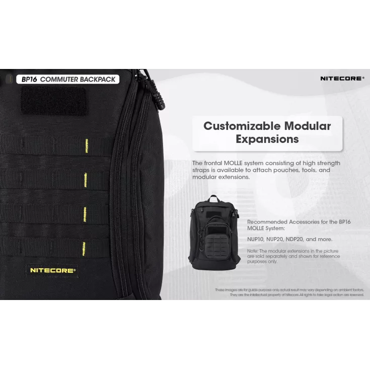 The BP16 features frontal MOLLE straps that can be used to attach smaller modular pouches such as the NUP10 and NDP20 (available separately).