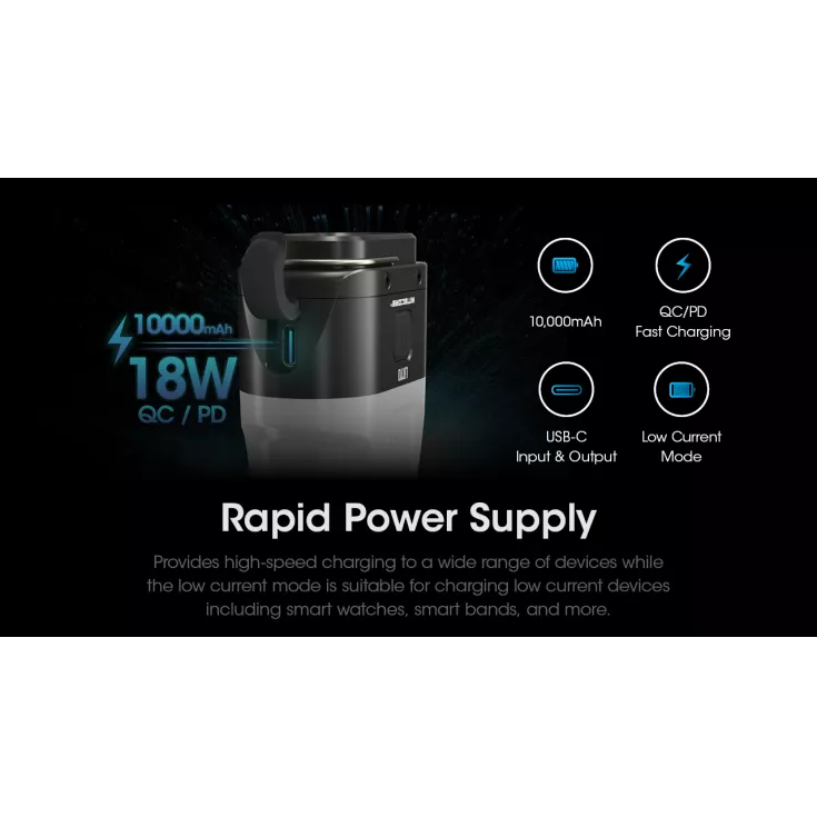 The lantern features a rapid power supply, providing high-speed charging to a wide range of devices while the low current mode is suitable for charging low current devices such as smart watches and more.