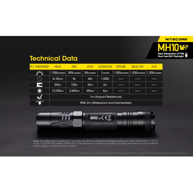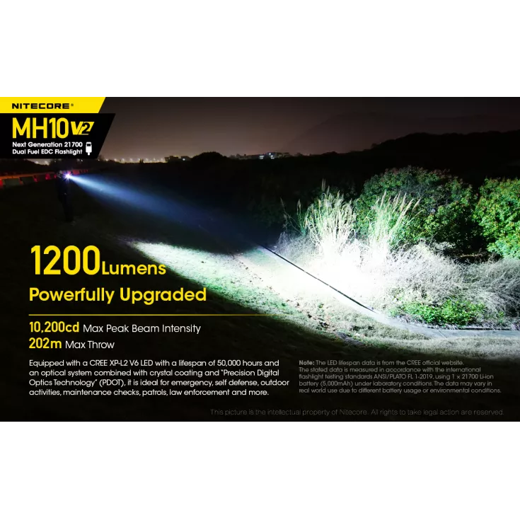 As with the Nitecore MH10, the V2 has a lightweight, slimline design for your comfort and ease of use. With a standard head diameter of 1″ (25.4mm) the torch is compatible with a range of accessories, including the Nitecore 25.4mm filters, diffuser tip and traffic wand.