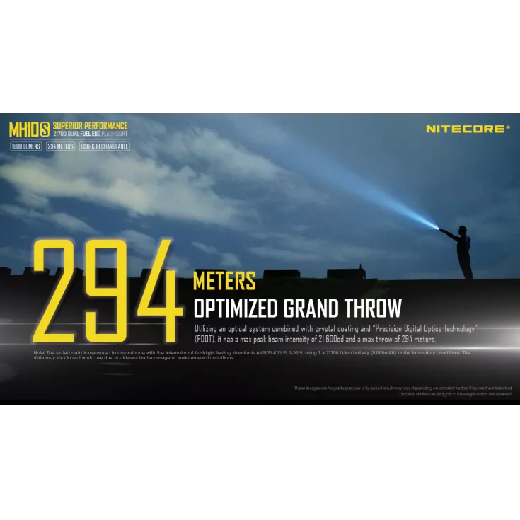 Turbo: 1800 lumens – 45 minutes – 294 meters