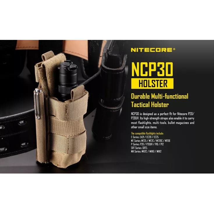The Nitecore NCP30 is a durable, military grade nylon holster, ideal for multi-functional use such as carrying torches and multi-tools.