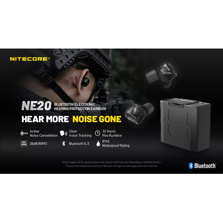 The Nitecore NE20 Electronic Bluetooth Earbuds provide noise cancelling and clear voice tracking.