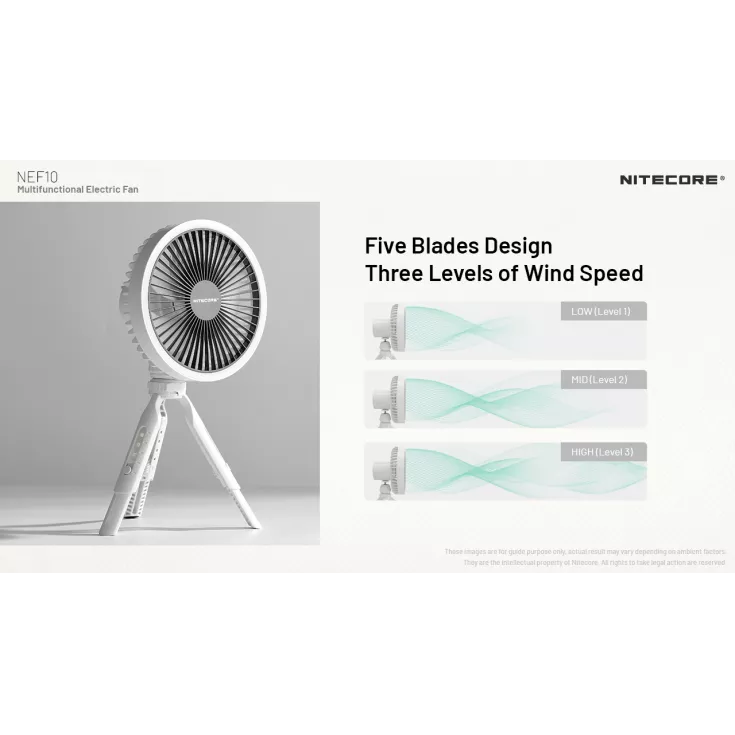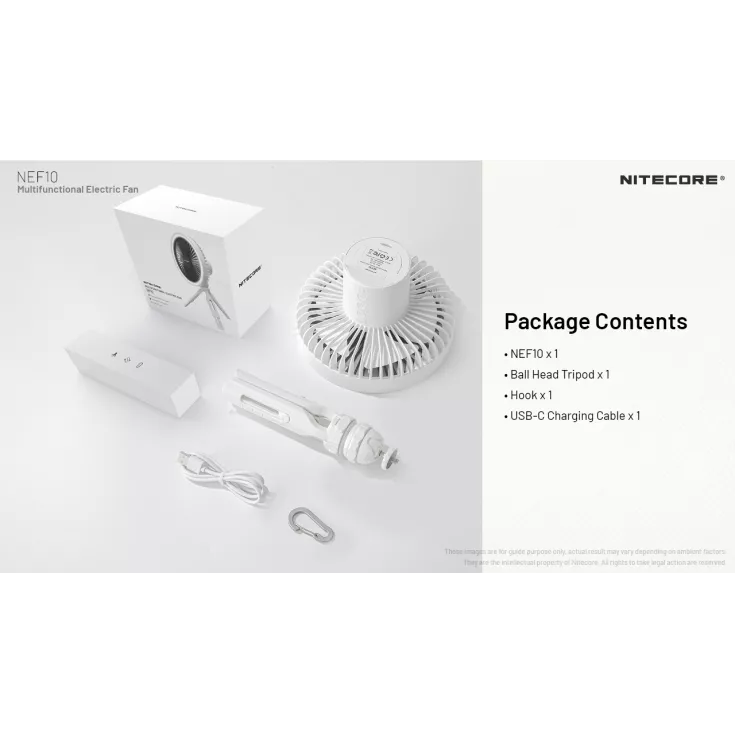 The Nitecore NEF10 is a multifunctional electric fan offering 3 levels of wind speed and can be used standing, handheld or hanging.