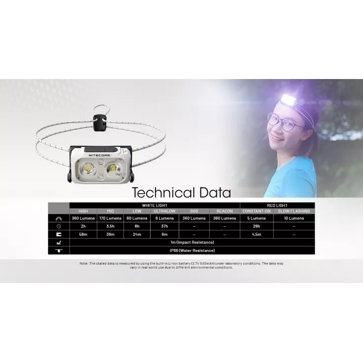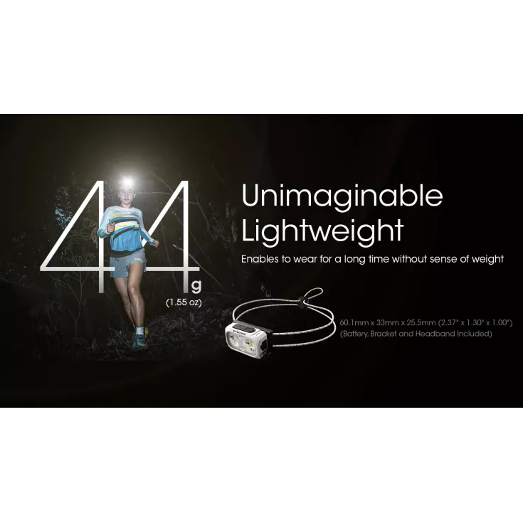 The Nitecore NU21 is an ultra lightweight dual beam rechargeable outdoor headlamp with a maximum output of 360 lumens and weighing just 44 grams.