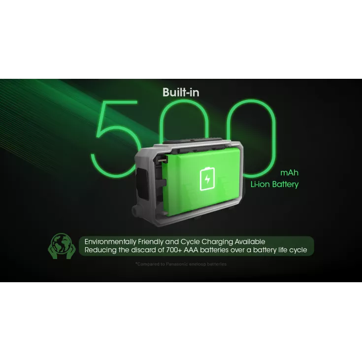 - Built-in 500mAh battery