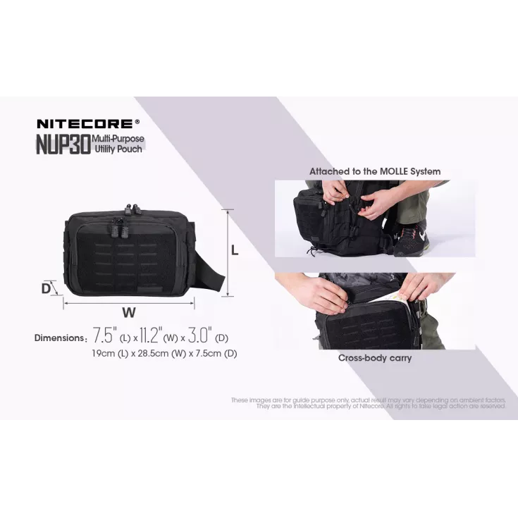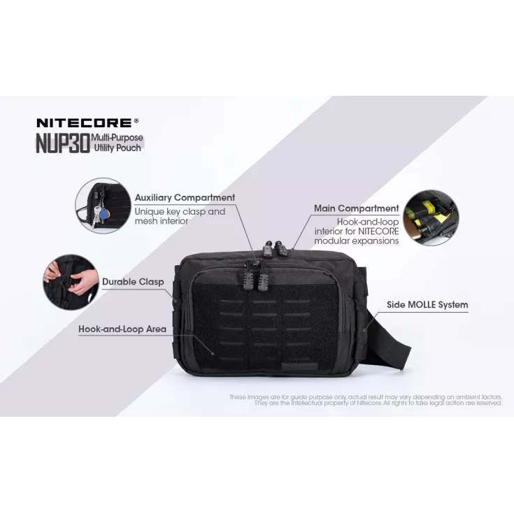 Designed as either a stand-alone bag or as a modular attachment to a larger pack, such as the Nitecore BP25, the NUP30 offers plenty of storage and versatility. The pouch comes with an adjustable shoulder strap for cross-body carry or it can be attached to your belt or another bag.