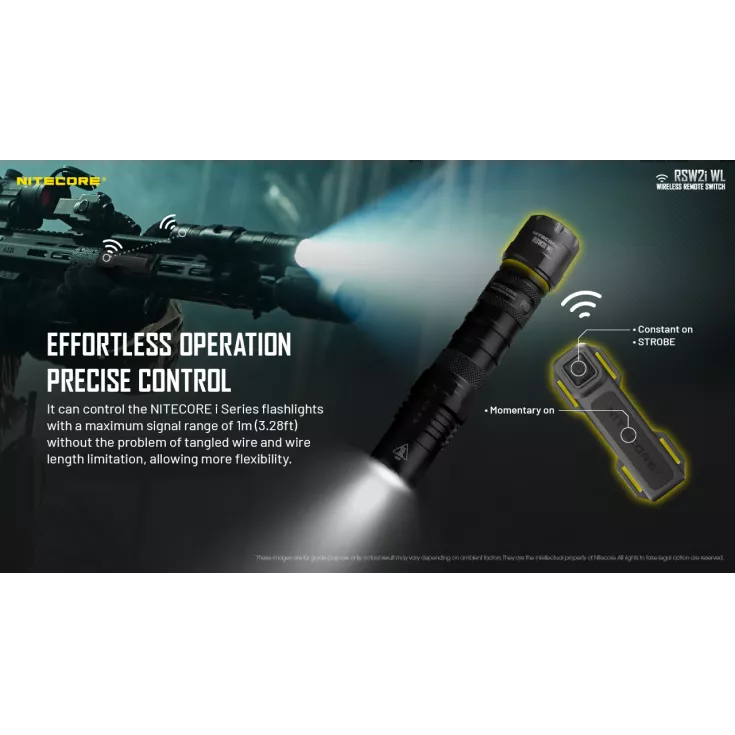 The Nitecore RSW2i WL is a wireless remote switch with a maximum signal range of 1 meter. With effortless operation and precise control, the remote switch can control the Nitecore i series flashlights without the problem of tangled wires and wire length limitation, allowing more flexibility and convenience.
