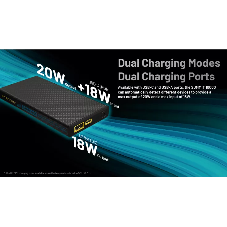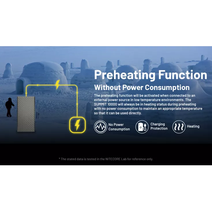 The Nitecore Summit 10000 Power bank has been designed with an innovative heating mode, enabling the power bank to provide a stable output in low temperature environments, as low as -40°C. Equipped with the PI heating system, the power bank has high efficiency and high speed heating performance to ensure the battery can work at an appropriate temperature for reducing the loss of power.