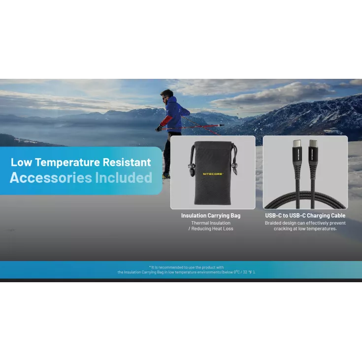 The carbon fiber construction also guarantees the thermal insulation in low temperature environments. The power bank is perfect for mountaineering, polar exploration, skiing and other snow sports.