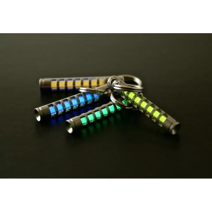 The TEC-S323 Isotope Fob is a keychain fob specifically designed to hold a standard 3mm x 22.5mm self-luminous tritium vial. Tritium vials come in a variety of colors, and will glow for many years without requiring any type of “charging” from sunlight.